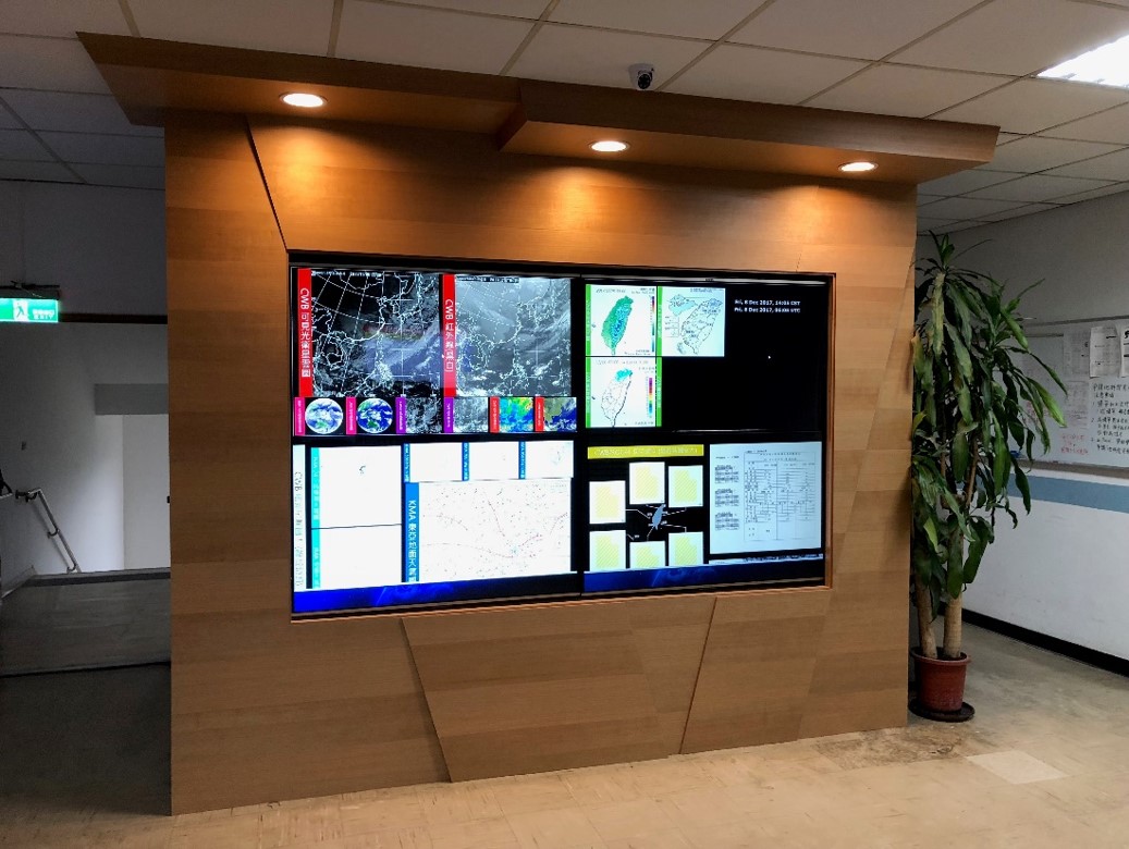 自動化即時天氣資訊收集與展示,以8K畫質提供綜觀天氣分析研討使用。