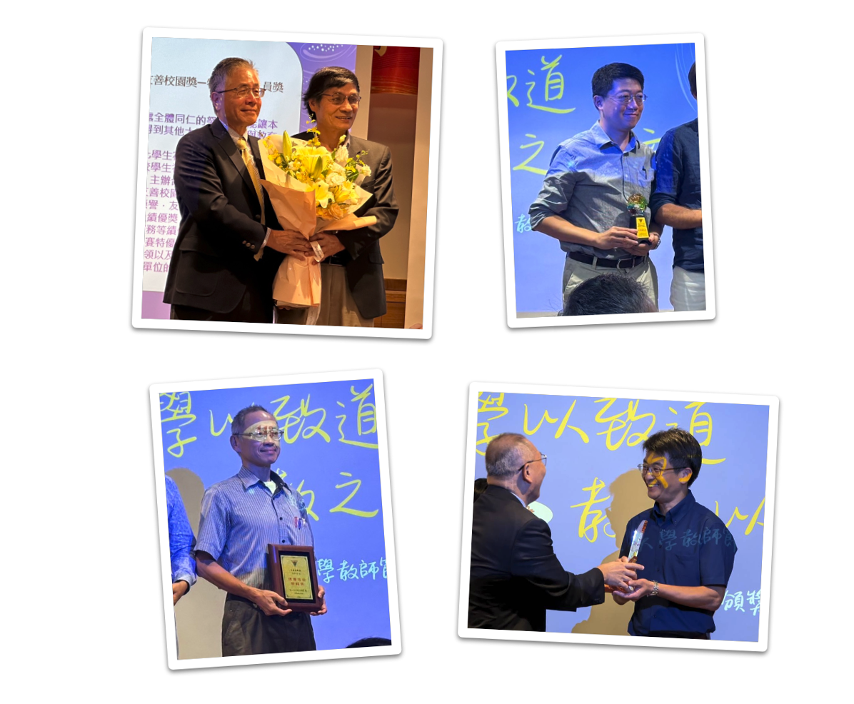 2024-09-24恭喜林沛練學務長獲得友善校園獎(全國唯一)、王聖翔老師獲得校務服務貢獻獎、鍾高陞老師獲得校教學優良獎、王國英老師獲得專利移轉獎!