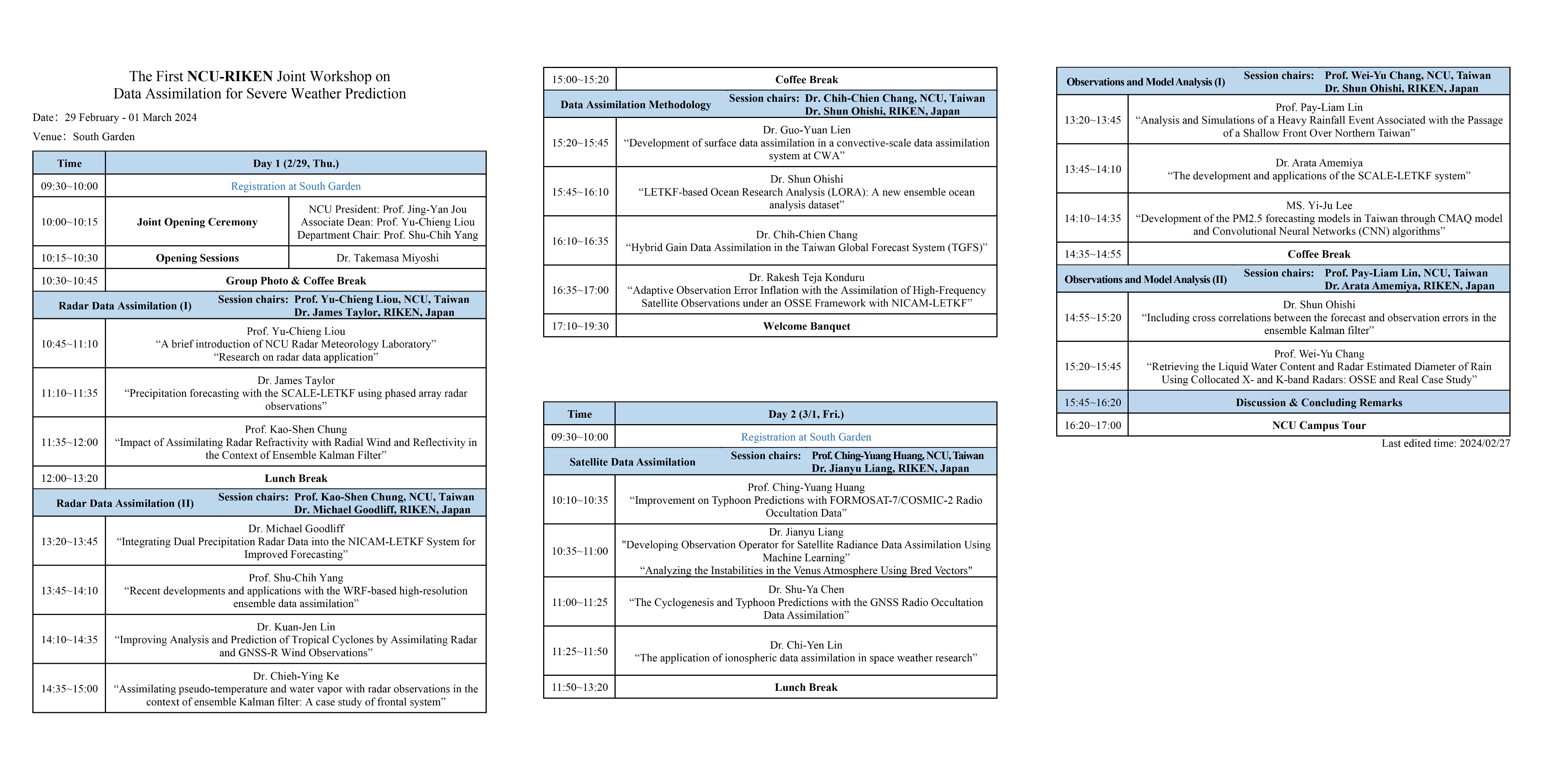 The First NCU-RIKEN Joint Workshop on Data Assimilation for Severe Weather Prediction