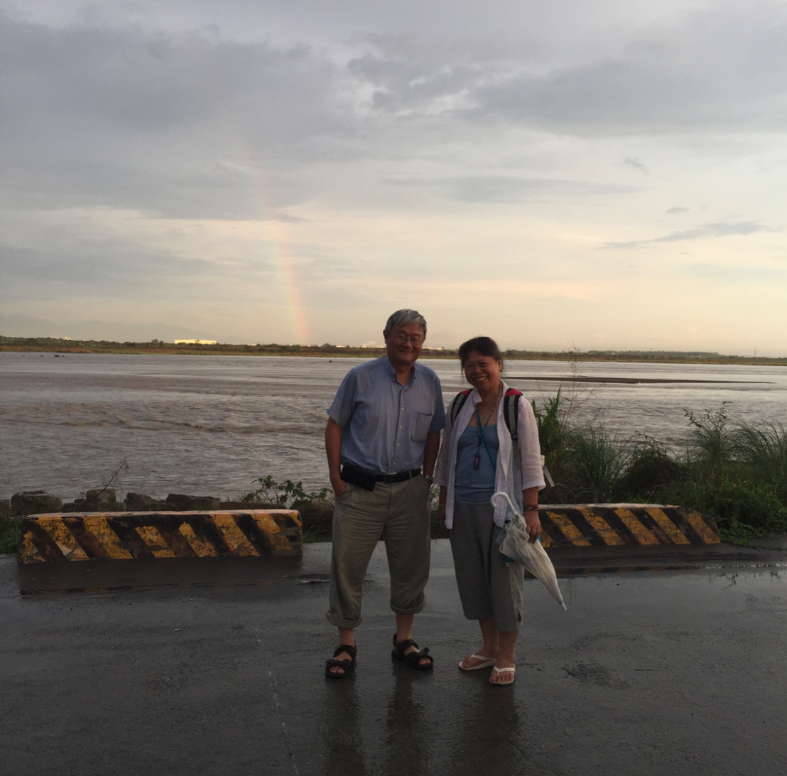 圖二、2015年參加西南氣流觀測實驗與陳台琦老師合影於高屏溪畔。