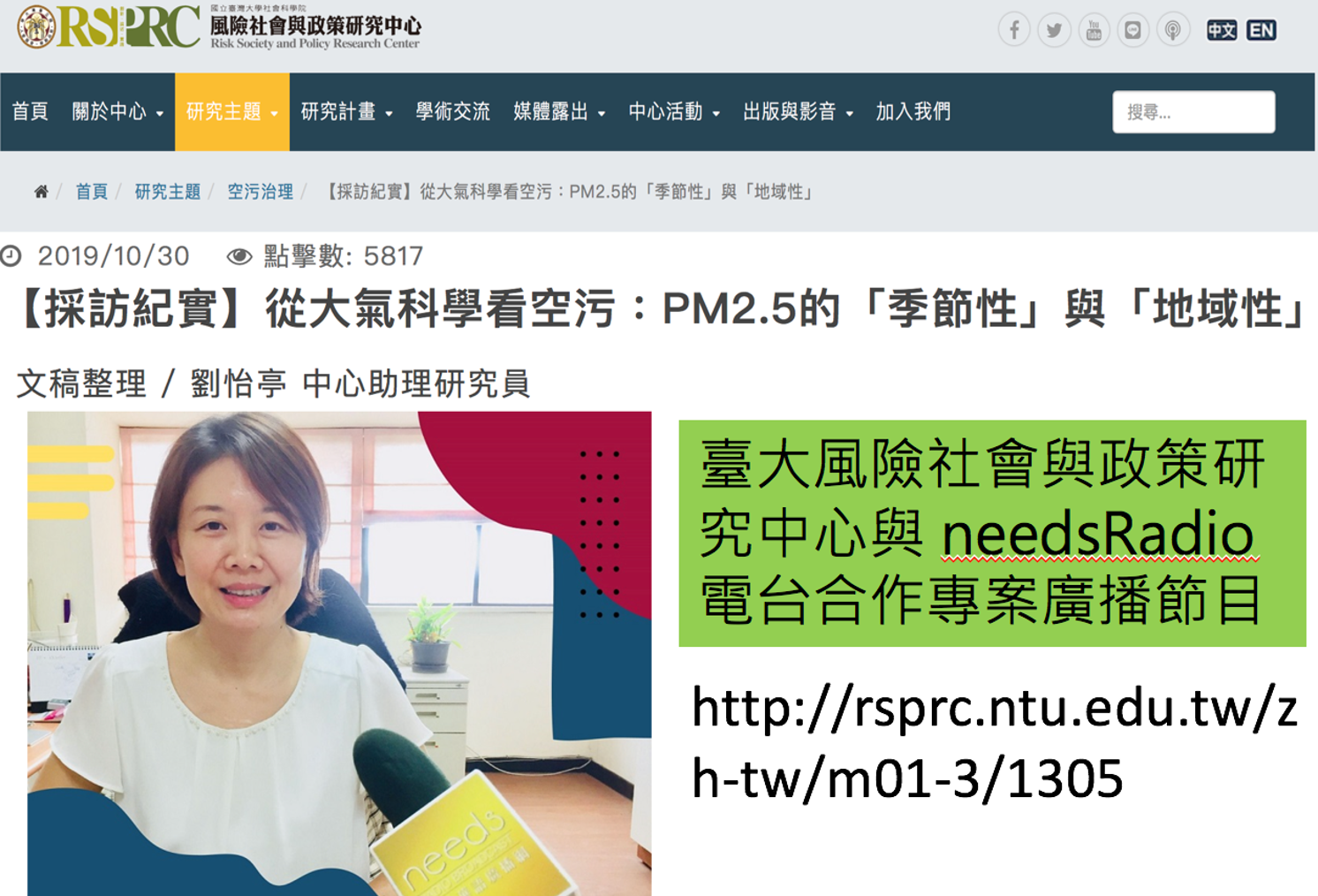 圖二、臺大風險與社會政策研究中心與needsRadio電台合作專案廣播節目截圖。