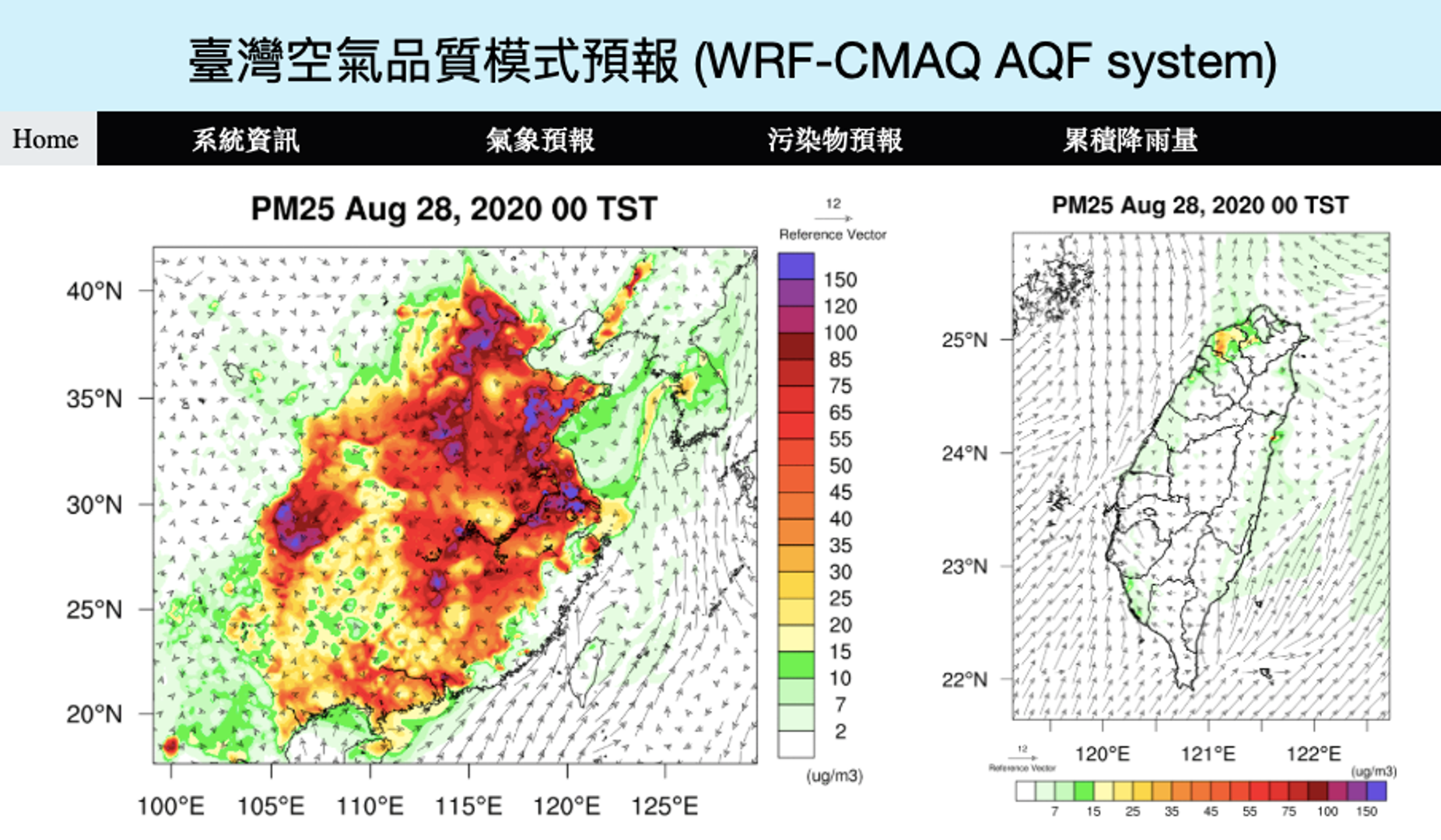 圖三、中央大學多維空氣品質模擬實驗室所建置CMAQ空品模式預報系統網頁示意圖。