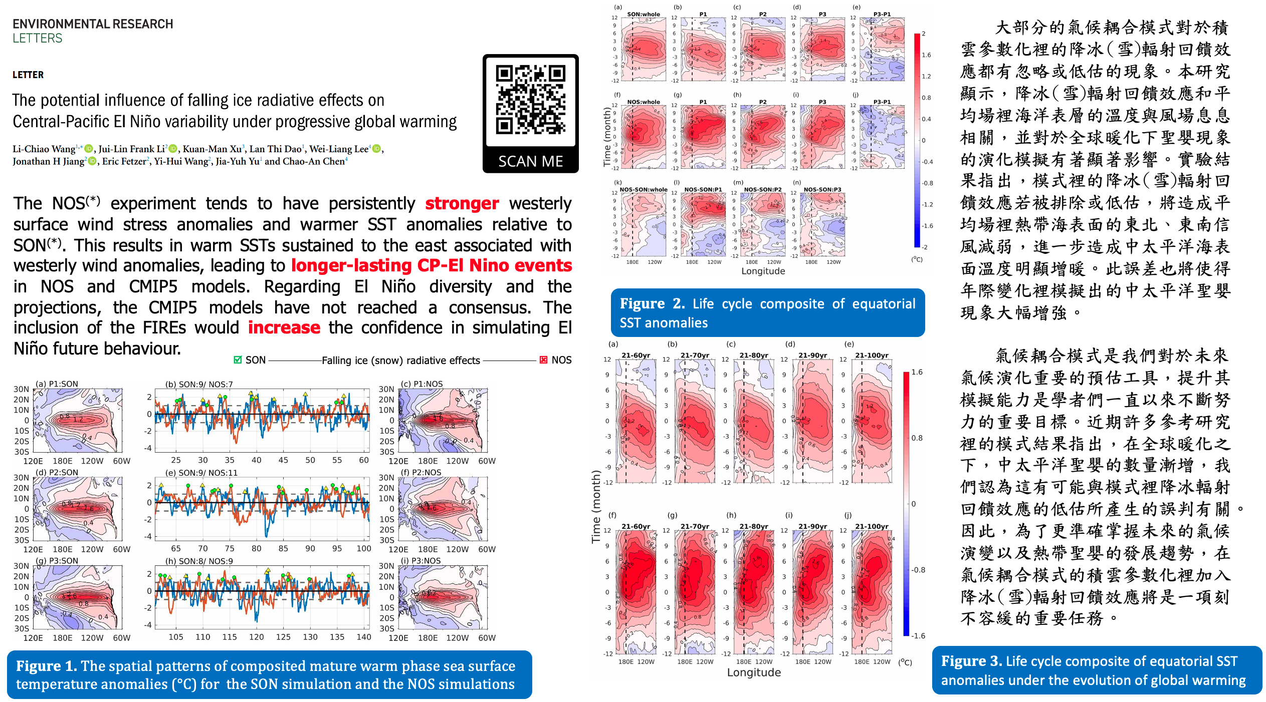 王儷樵老師研究降冰輻射效應對於全球暖化下中太平洋聖嬰模擬的影響
