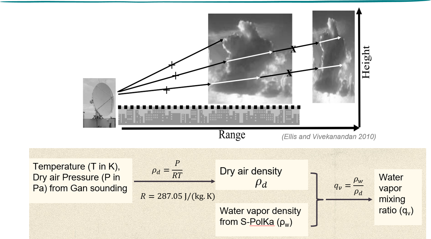 圖1. NCAR 雙波段(S-band & K-band)雷達反演降水系統周圍水氣資訊示意圖。