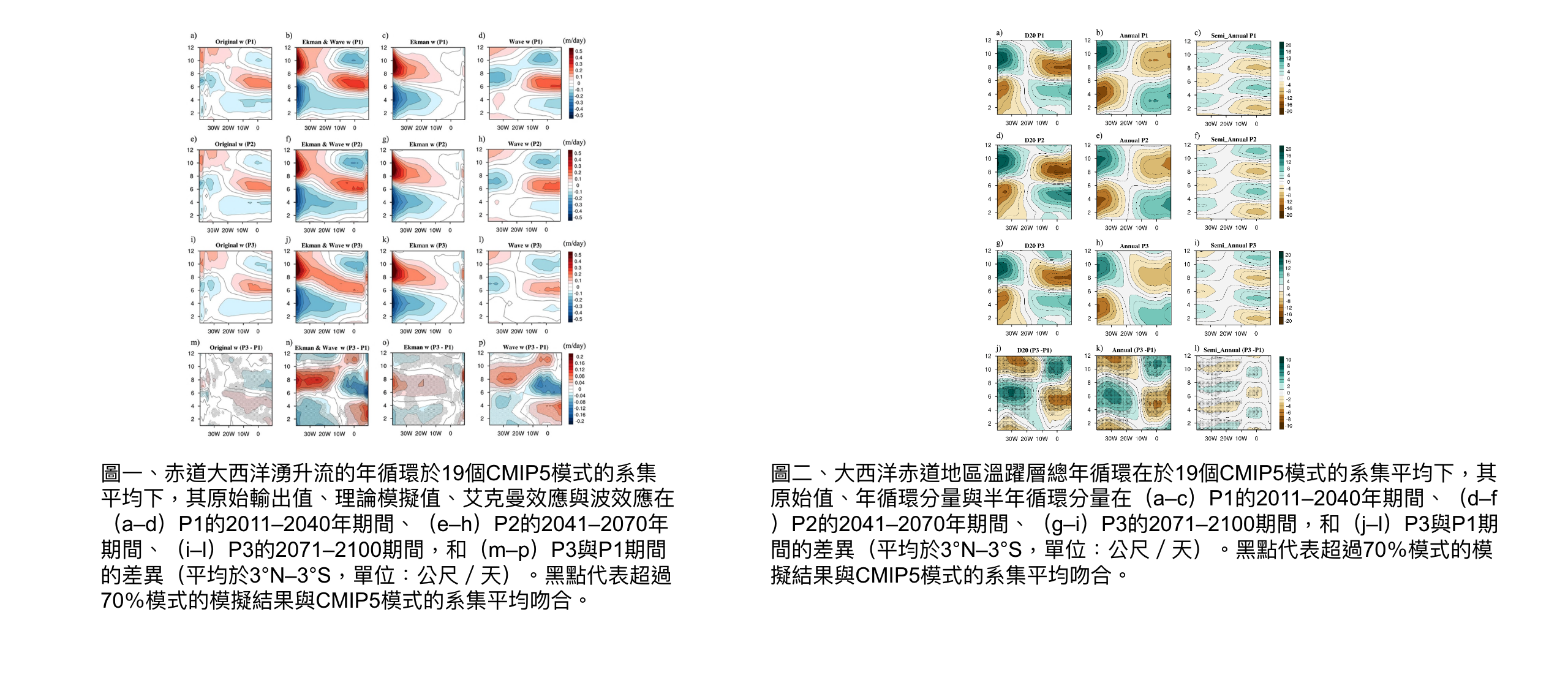 詳情請見全球暖化下赤道大西洋湧升流年循環之動力機制及其對於太平洋ENSO的潛在影響。