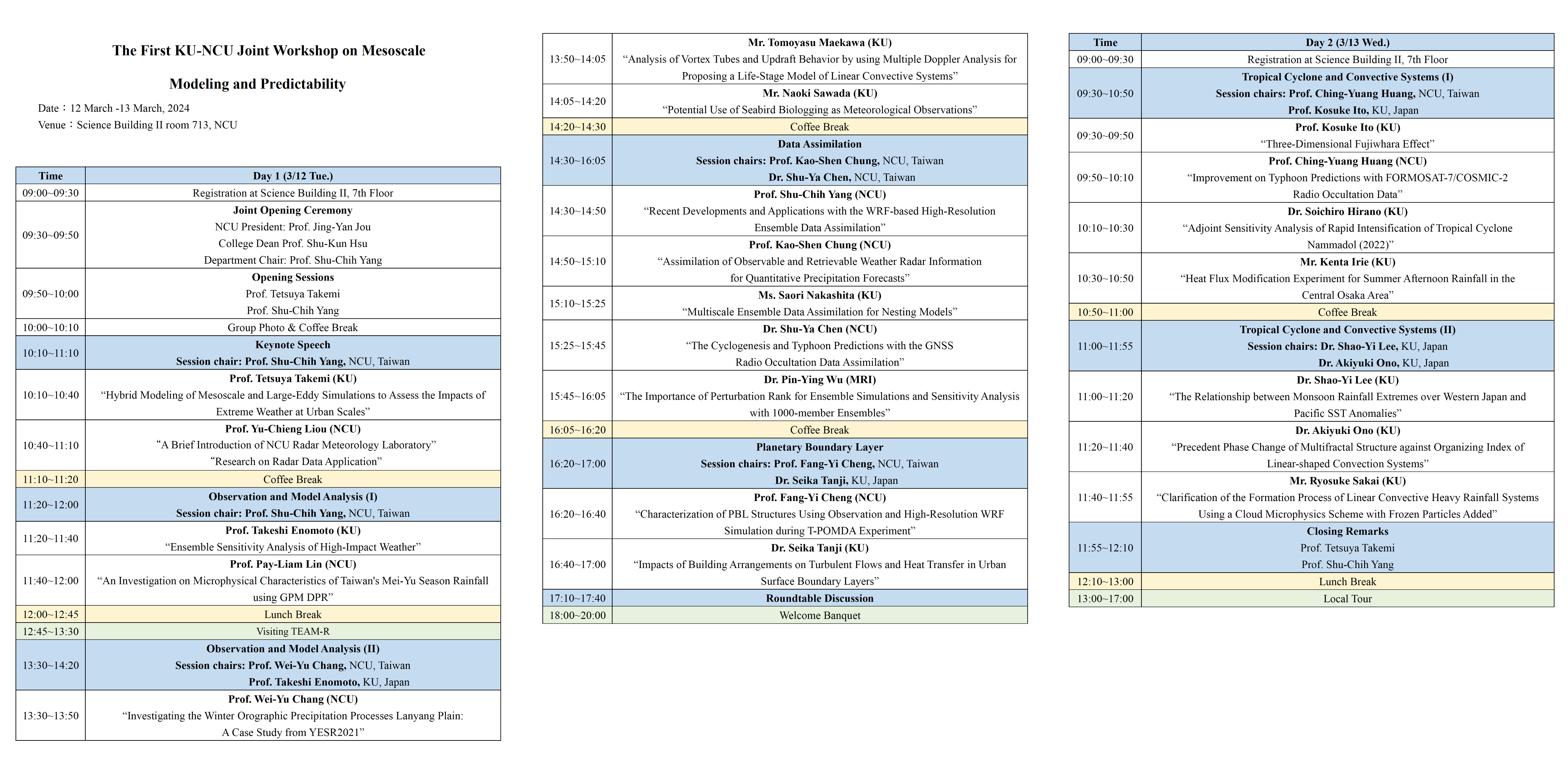 The First KU-NCU Joint Workshop onMesoscale Modeling and Predictability