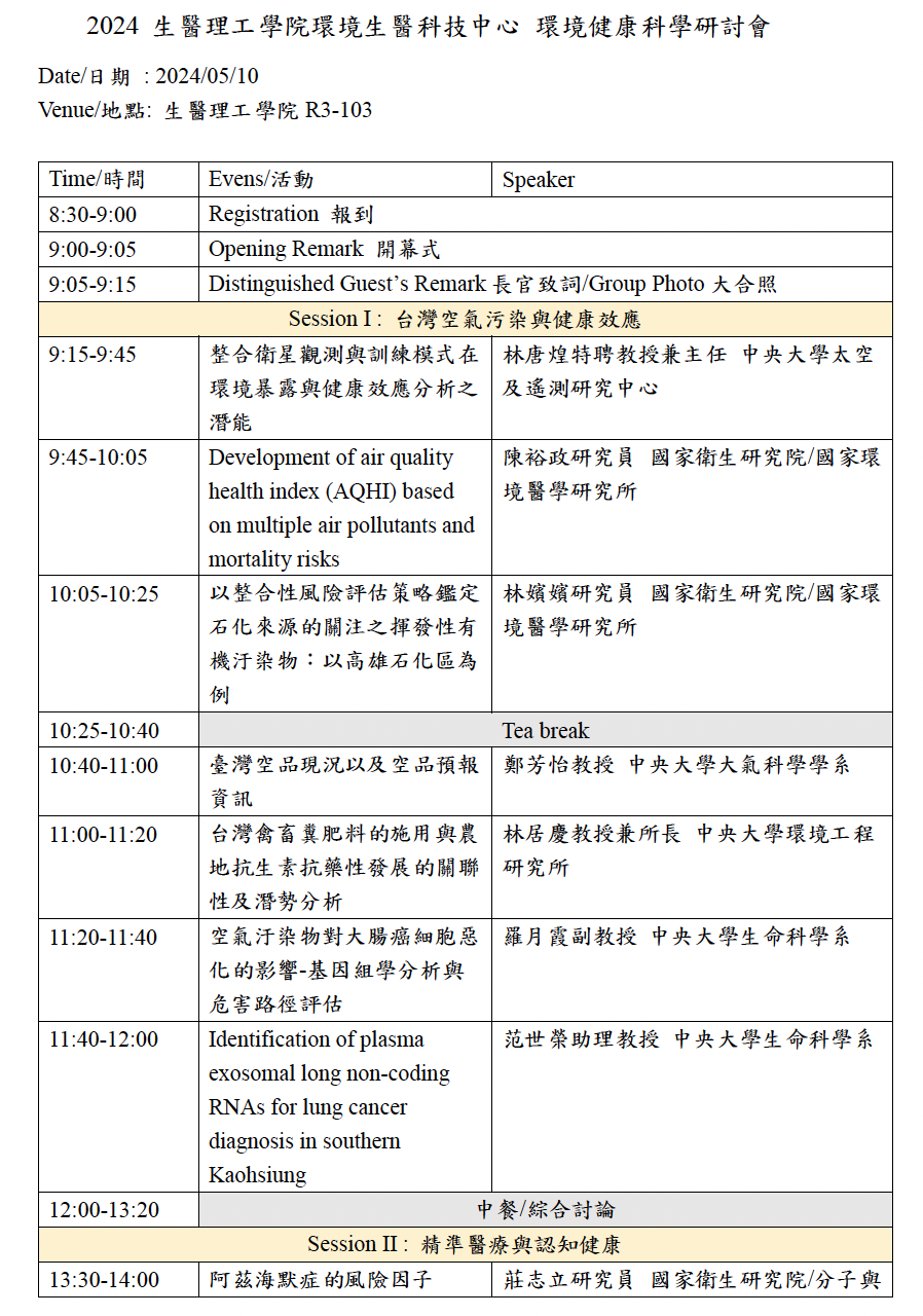 2024 生醫理工學院環境生醫科技中心-環境健康科學研討會
